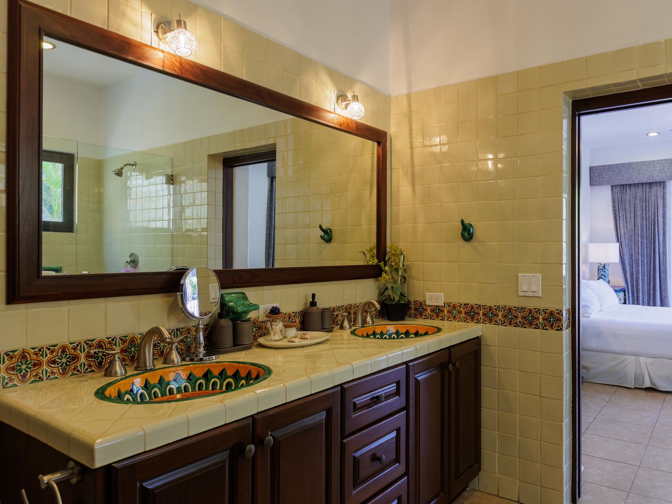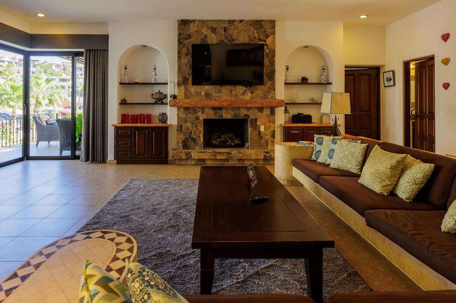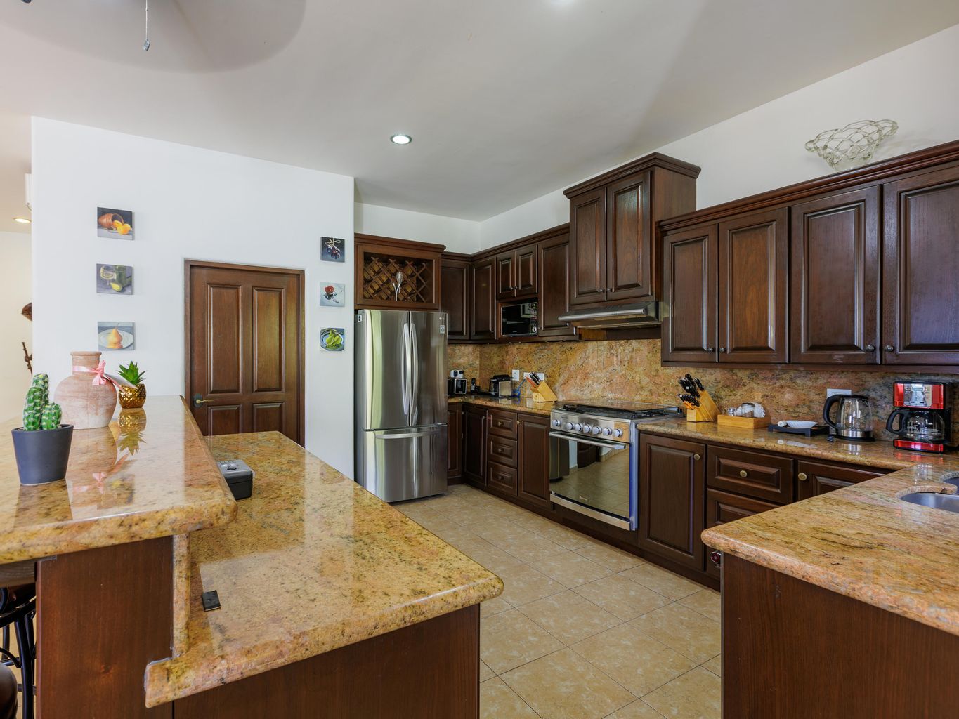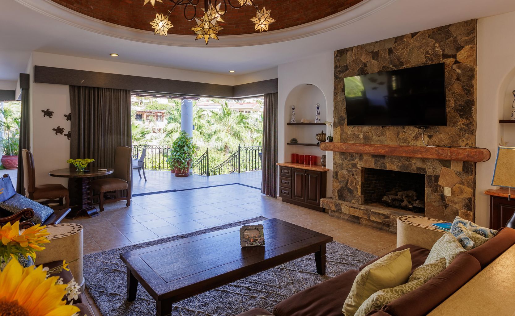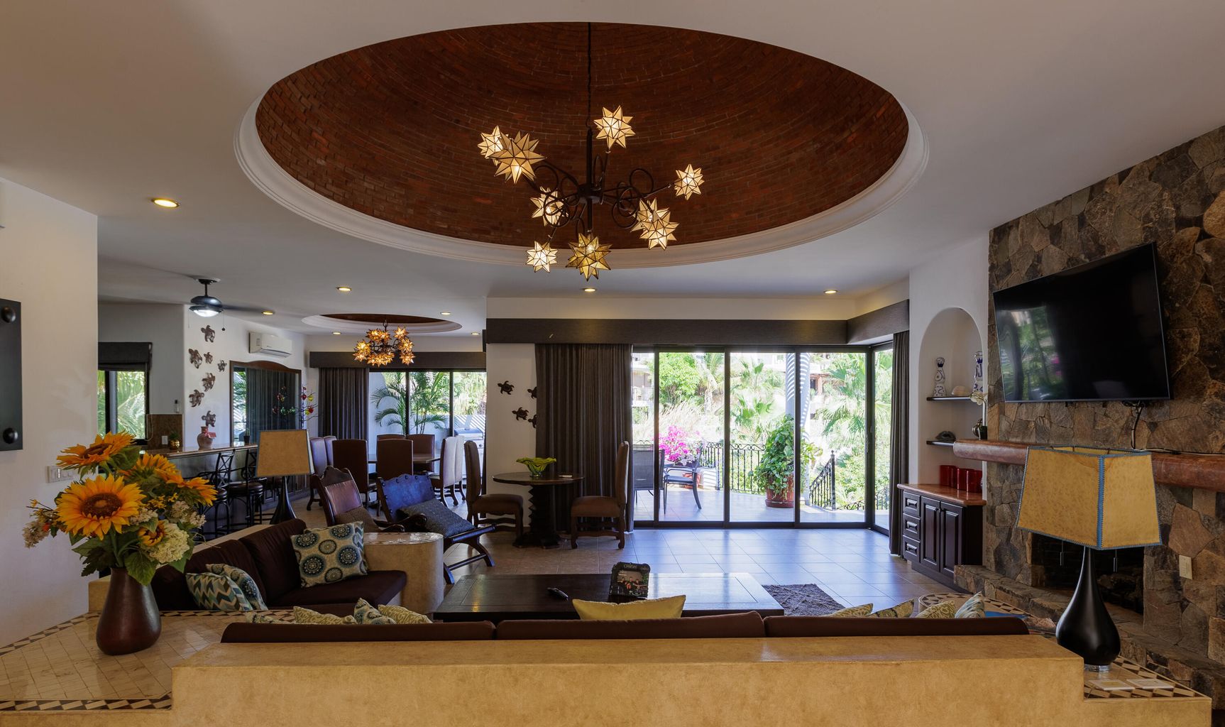 The lower level includes four guest suites, three with direct pool access, each with its own ensuite bath. Outdoor living highlights include a swimming pool, jetted spa, and spacious patio with sun and shade. A unique rock bridge provides direct access to the private Pedregalito Park with a 25m lap pool, palapa, and lounge area.