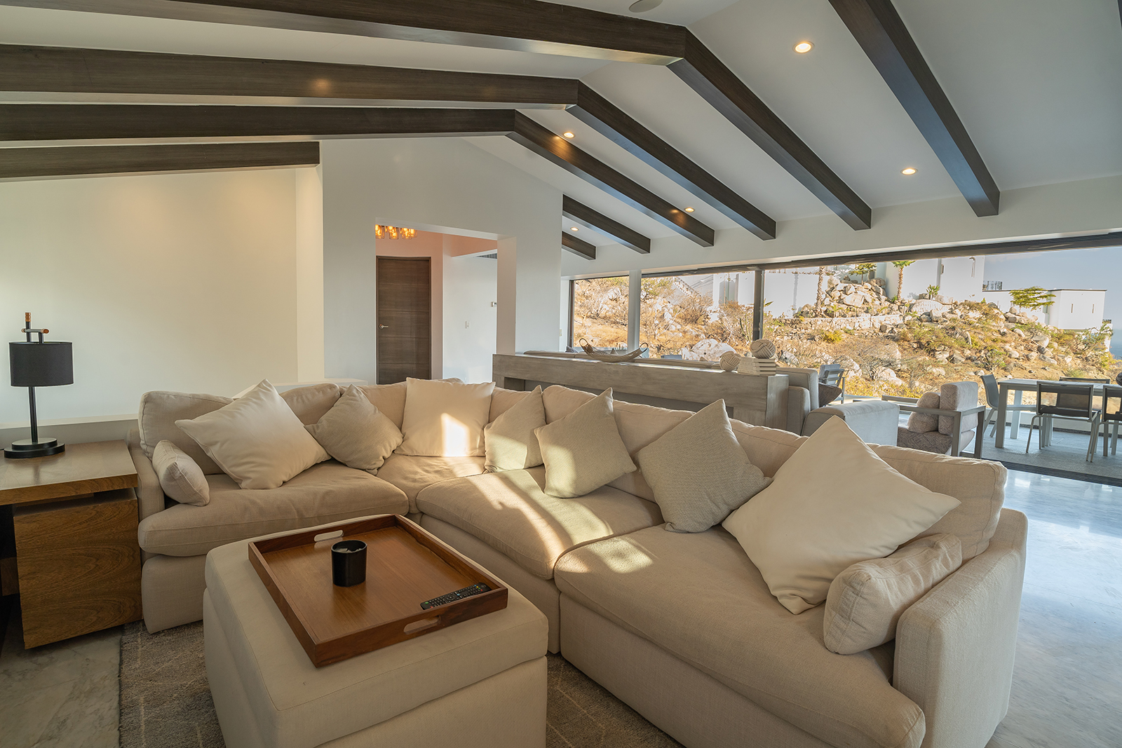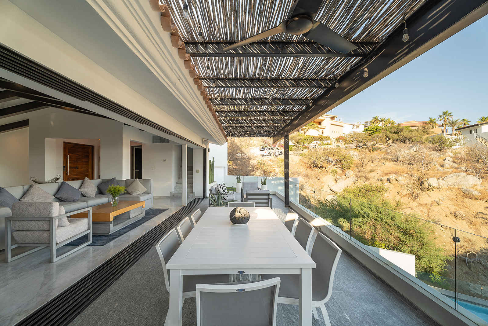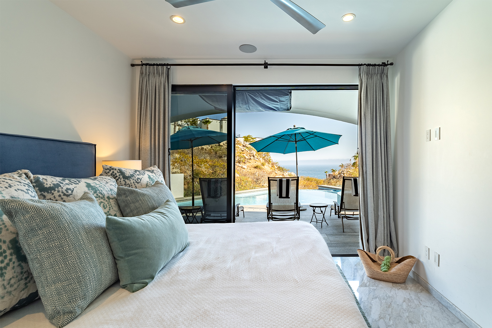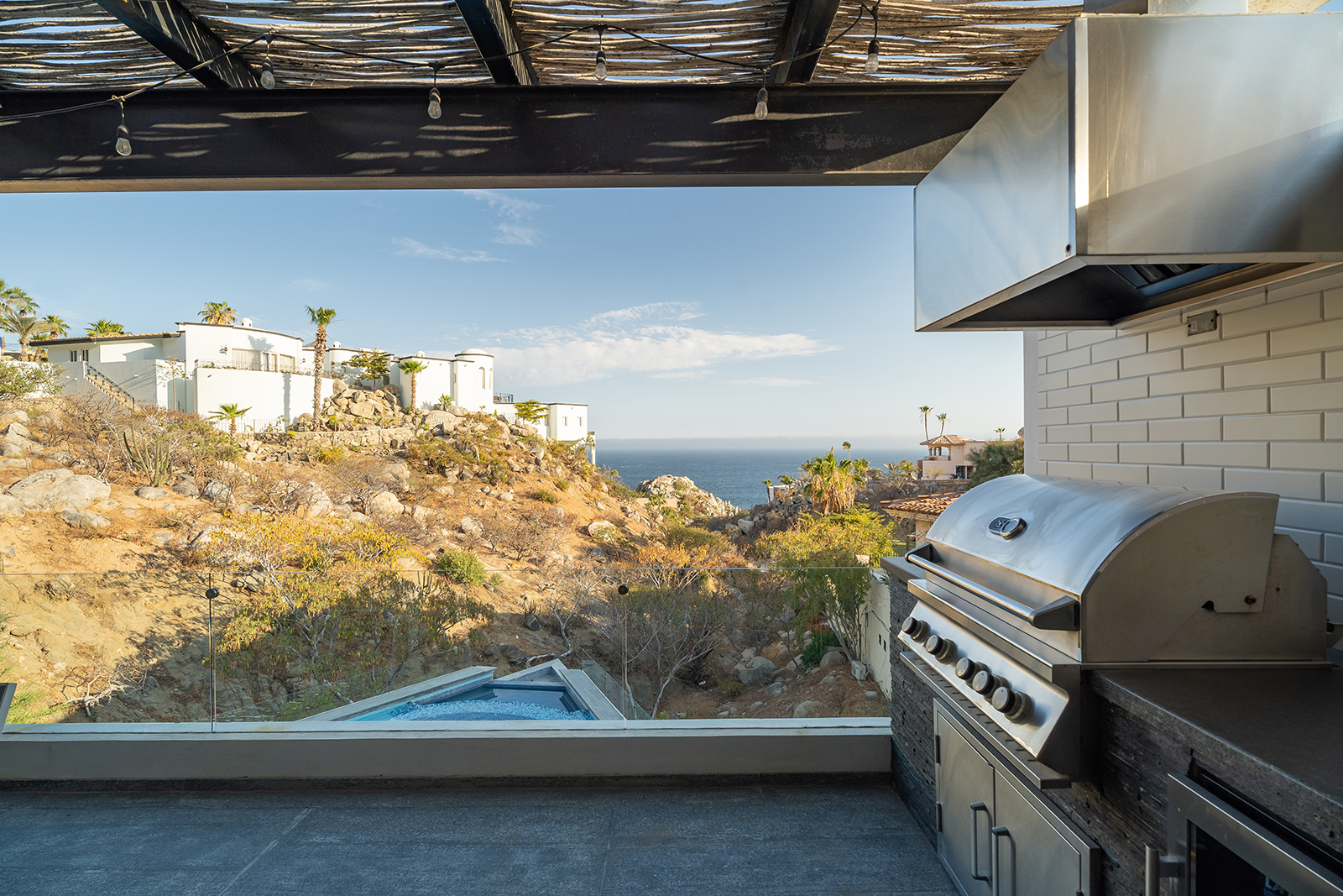 Discover the epitome of elegance at Casa Nido del Mar, a secluded haven perched on the Pacific side of Pedregal Hills. This luxurious property perfectly combines indoor and outdoor living through its spacious, open-concept design. The two-story living area, framed by floor-to-ceiling glass balcony walls, delivers stunning ocean views from every corner. Entertain guests on the sprawling terrace, or simply relax and take in the panoramic ocean views from every room. Featuring 4 bedrooms, 4 bathrooms, and 3,2002 sq. ft. of refined living space, Casa Nido del Mar boasts a large pool with serene valley views that cascade toward the Pacific Ocean, offering a peaceful escape.