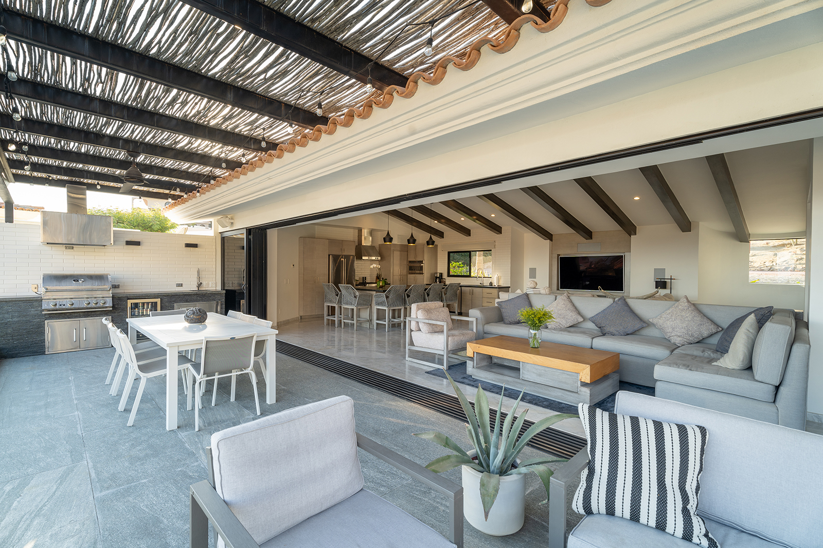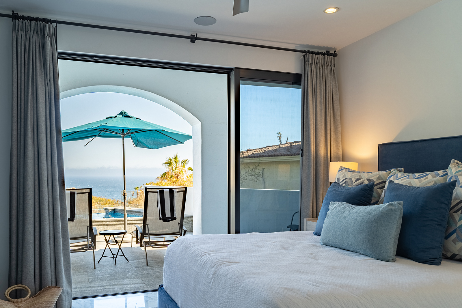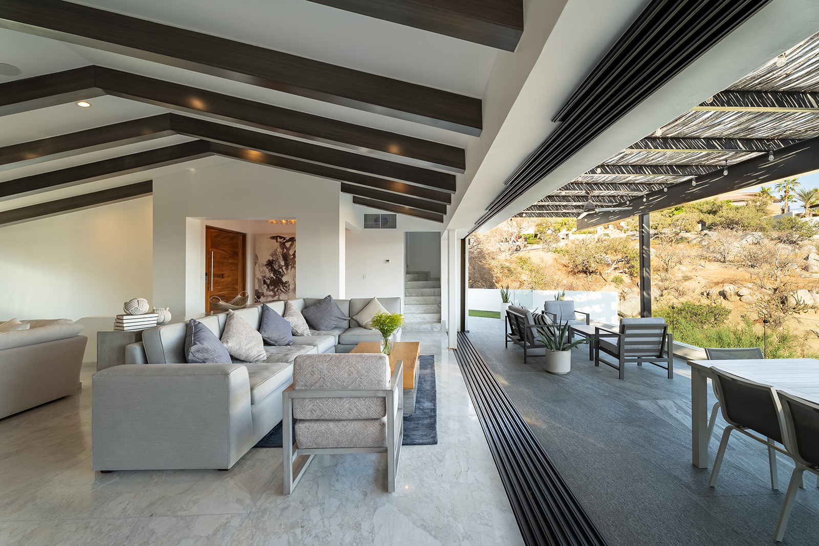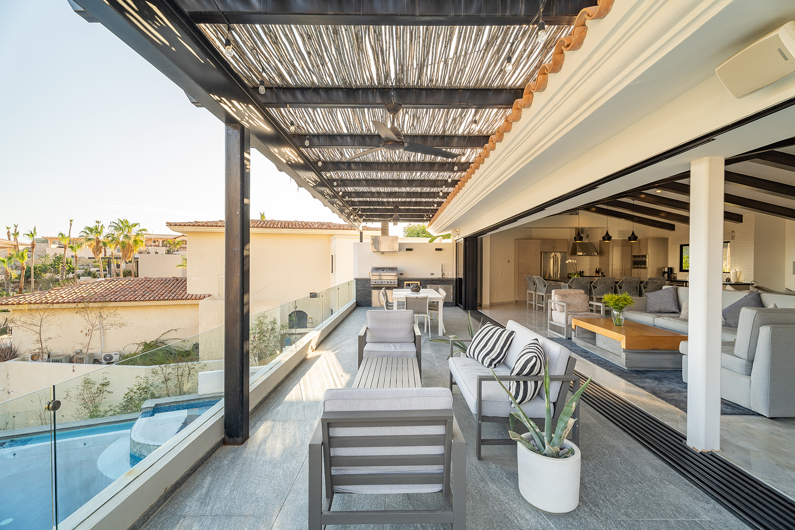Discover the epitome of elegance at Casa Nido del Mar, a secluded haven perched on the Pacific side of Pedregal Hills. This luxurious property perfectly combines indoor and outdoor living through its spacious, open-concept design. The two-story living area, framed by floor-to-ceiling glass balcony walls, delivers stunning ocean views from every corner. Entertain guests on the sprawling terrace, or simply relax and take in the panoramic ocean views from every room. Featuring 4 bedrooms, 4 bathrooms, and 3,2002 sq. ft. of refined living space, Casa Nido del Mar boasts a large pool with serene valley views that cascade toward the Pacific Ocean, offering a peaceful escape.