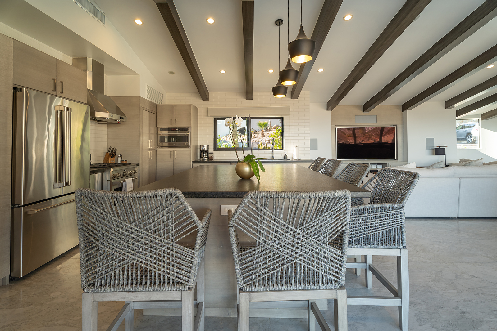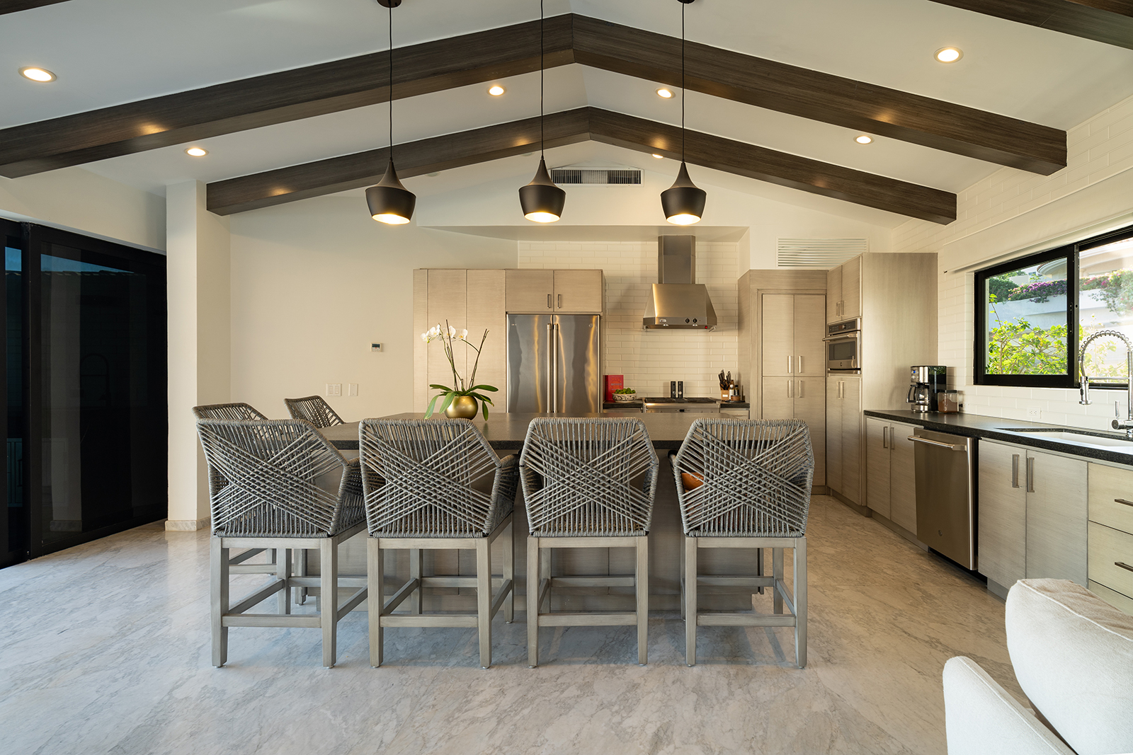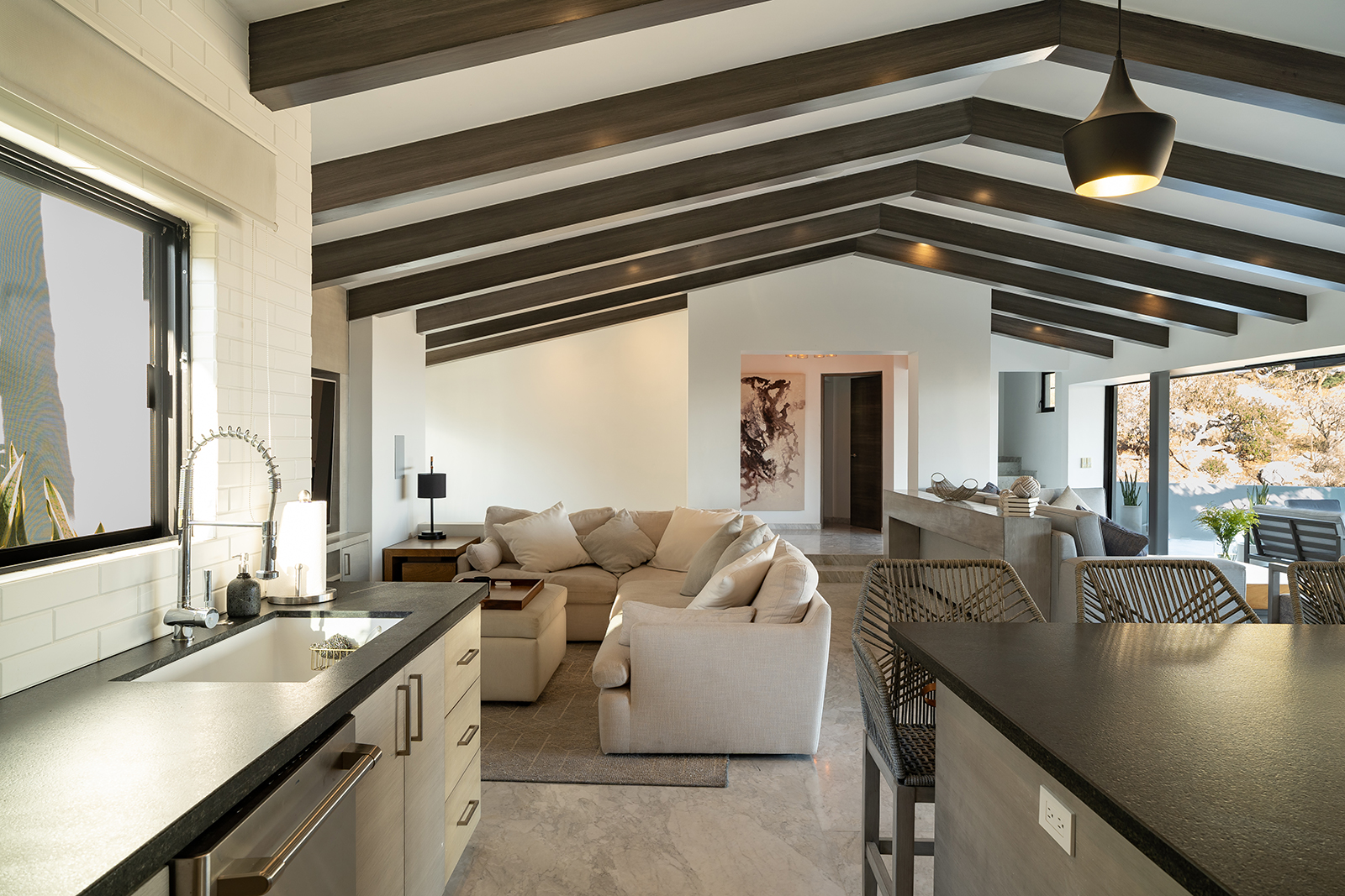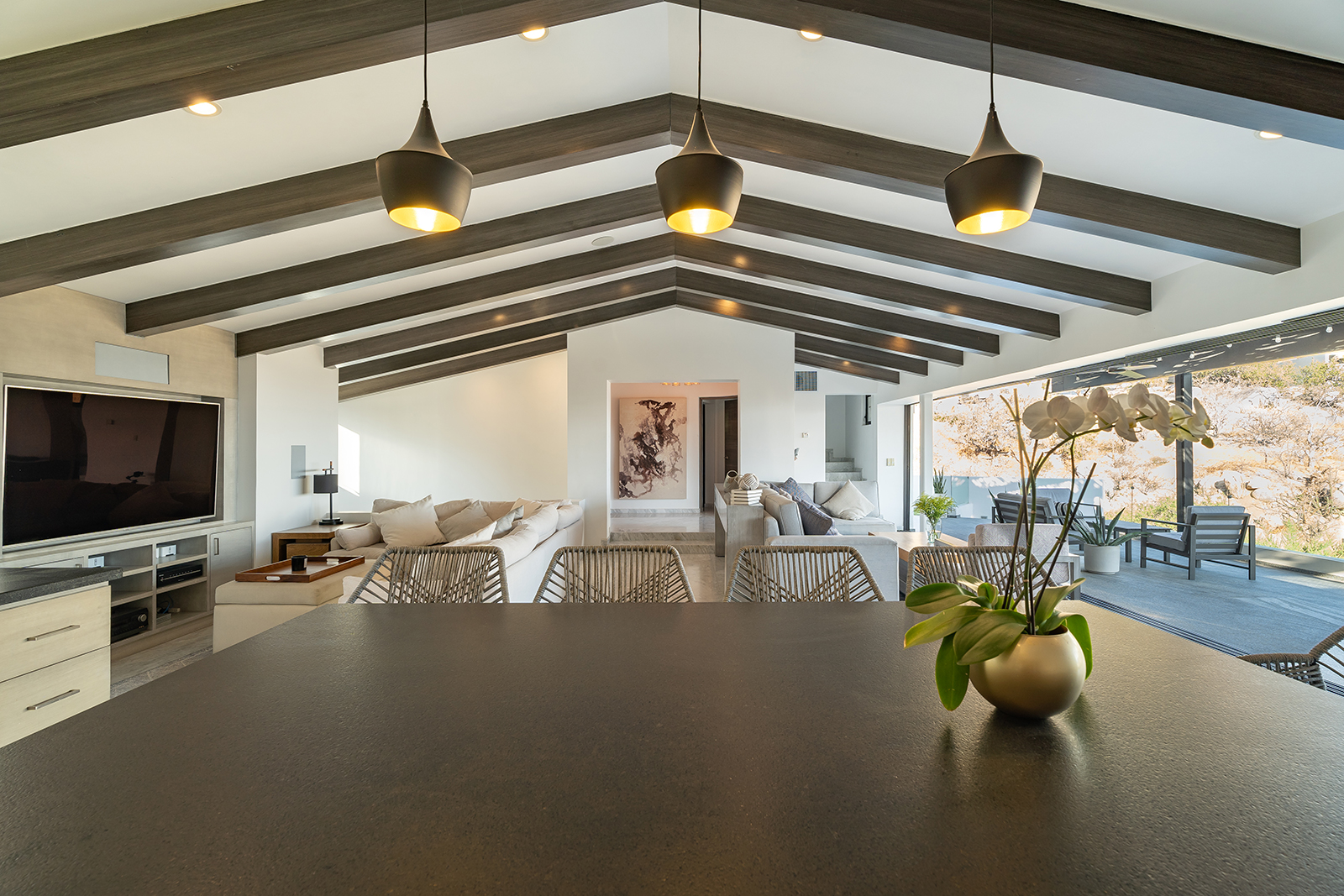 Discover the epitome of elegance at Casa Nido del Mar, a secluded haven perched on the Pacific side of Pedregal Hills. This luxurious property perfectly combines indoor and outdoor living through its spacious, open-concept design. The two-story living area, framed by floor-to-ceiling glass balcony walls, delivers stunning ocean views from every corner. Entertain guests on the sprawling terrace, or simply relax and take in the panoramic ocean views from every room. Featuring 4 bedrooms, 4 bathrooms, and 3,2002 sq. ft. of refined living space, Casa Nido del Mar boasts a large pool with serene valley views that cascade toward the Pacific Ocean, offering a peaceful escape.