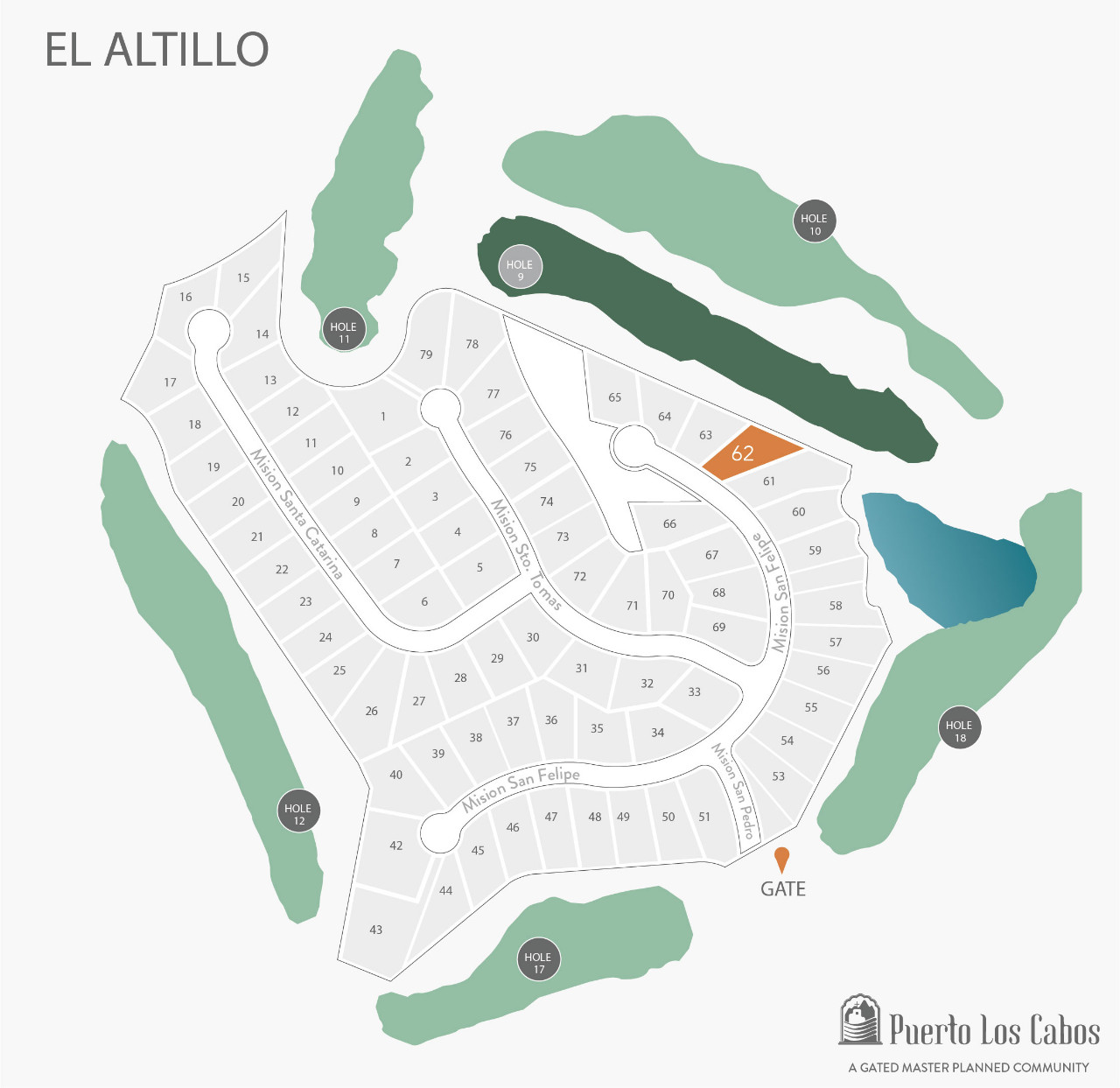 Discover unparalleled luxury with this premium lot located in the prestigious El Altillo neighborhood of Puerto Los Cabos, Mexico. This prime piece of land is perfectly positioned to allow for a two-level construction, providing an opportunity to design a residence that captures the essence of upscale living. Embrace the stunning vistas of the meticulously manicured greens of the 9th hole of the Puerto Los Cabos golf course, with the dramatic backdrop of mountain views. Each day promises to bring a visual spectacle, from the lush fairways to the majestic mountains that frame the horizon.