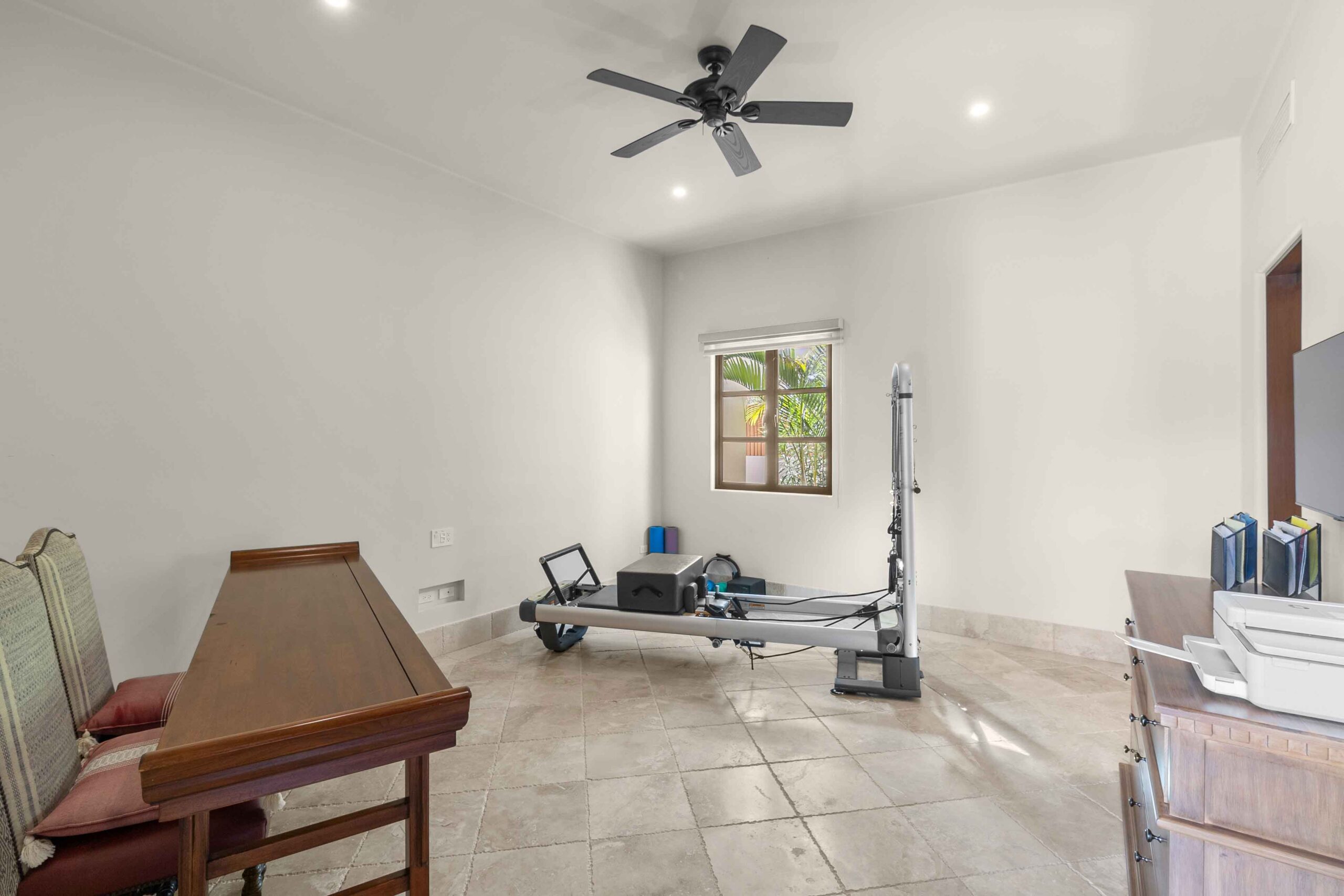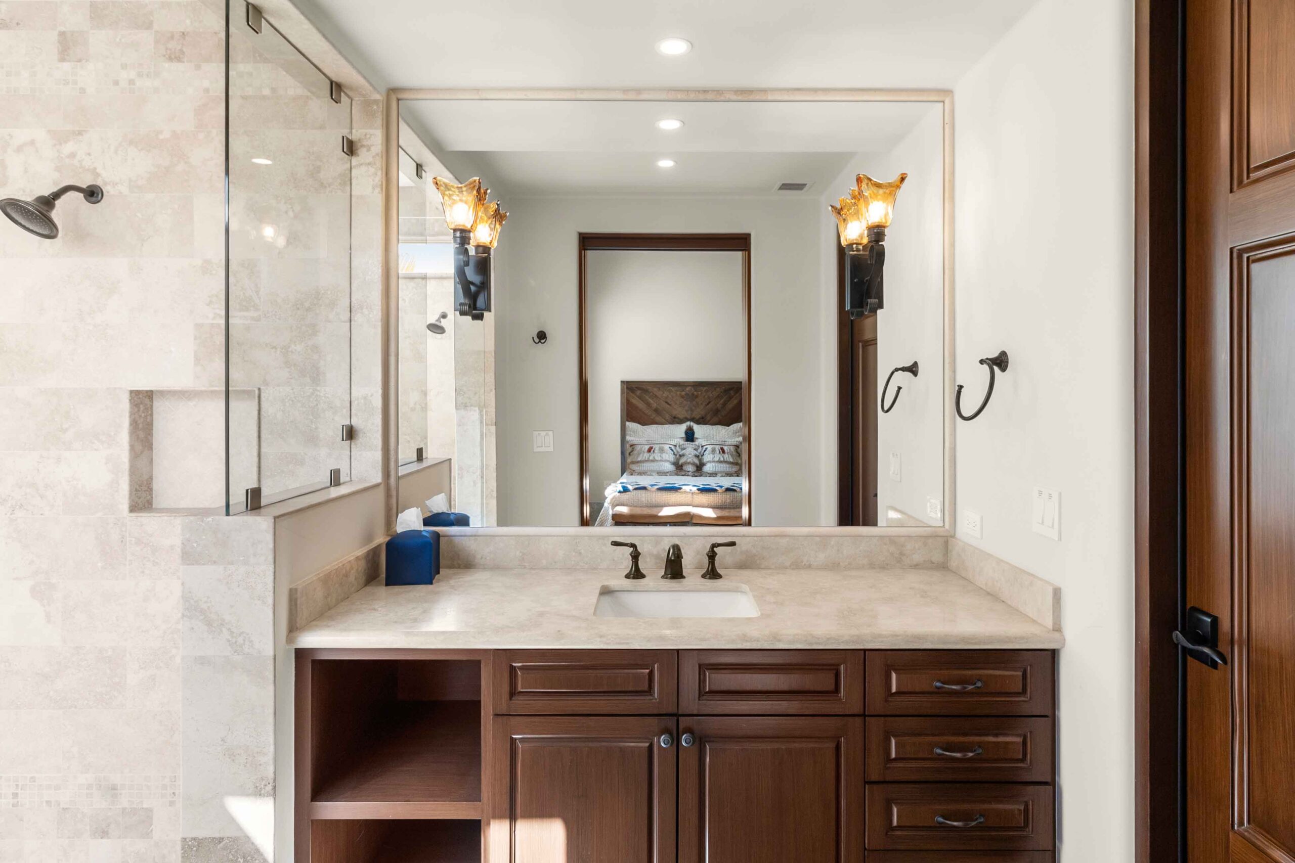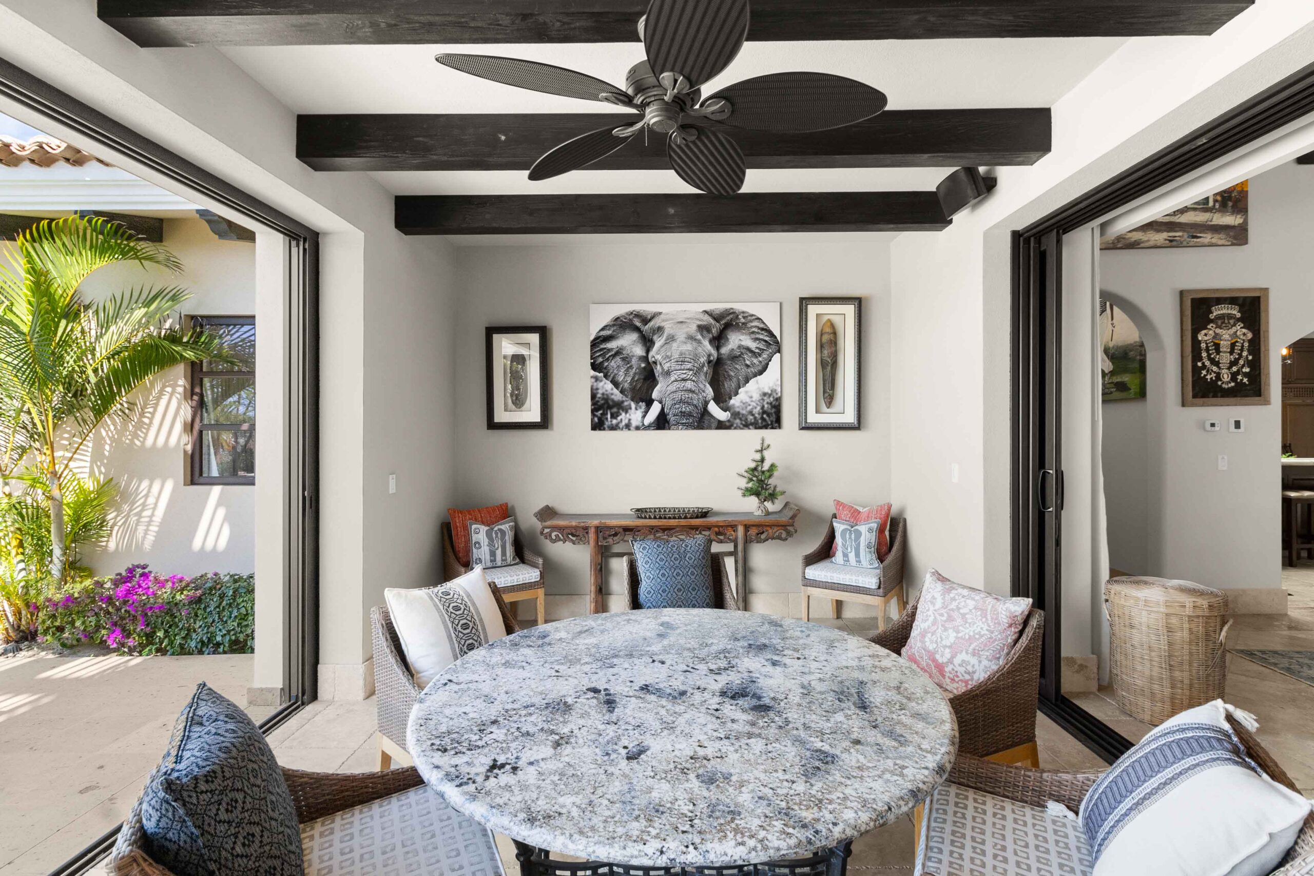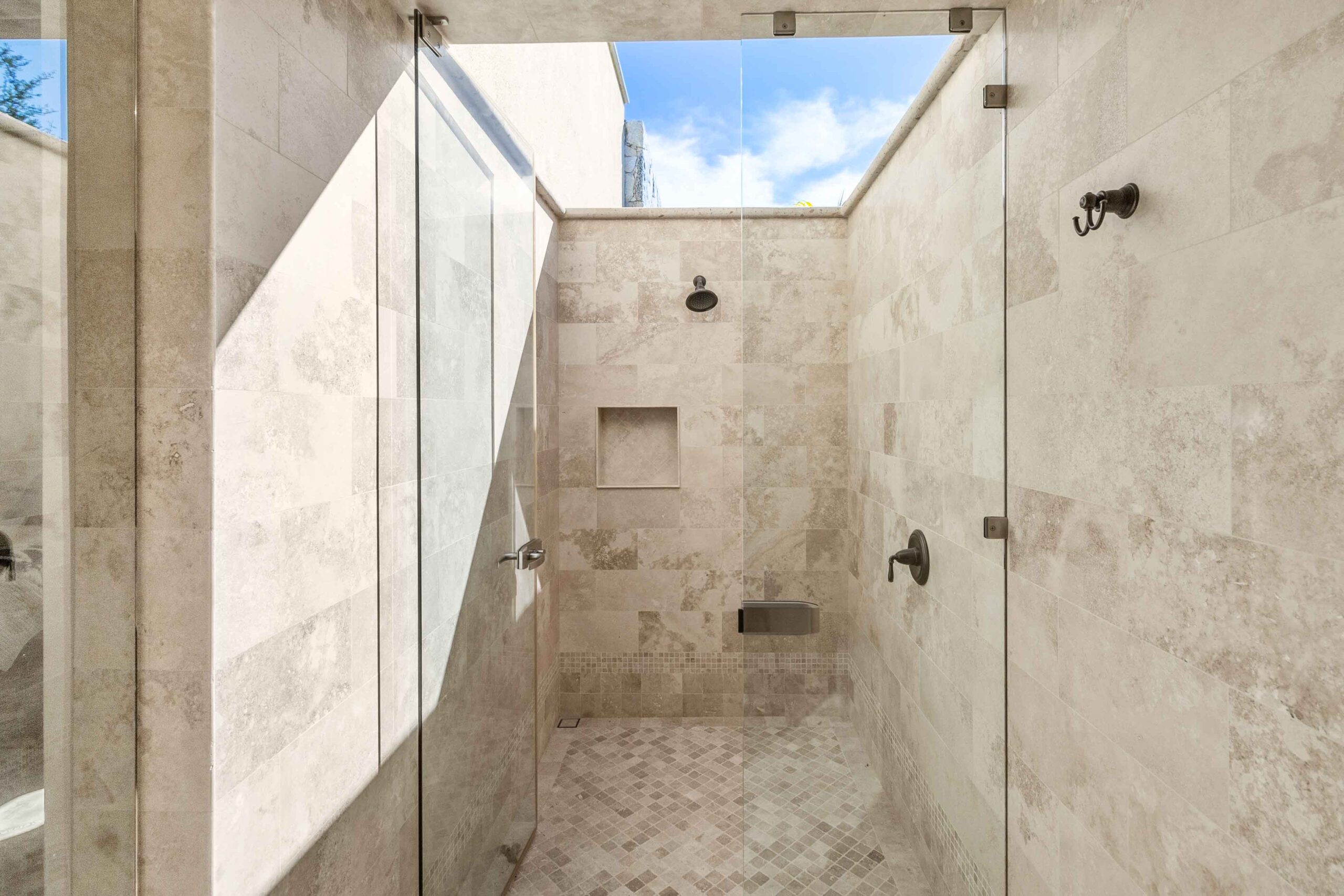 Luxurious Bedrooms: The two Primary Bedroom suites each offer direct access to pool deck, separate closet/dressing areas, large Jacuzzi tubs, and dual indoor/outdoor showers. The three additional bedrooms, all have access to the Courtyard; two have ensuite bathrooms with dual indoor/outdoor showers, one of which is equipped as a versatile office/ home gym space. The bunk bedroom, tailored for kids, offers four full-sized bunk beds, with adjacent full bathroom.