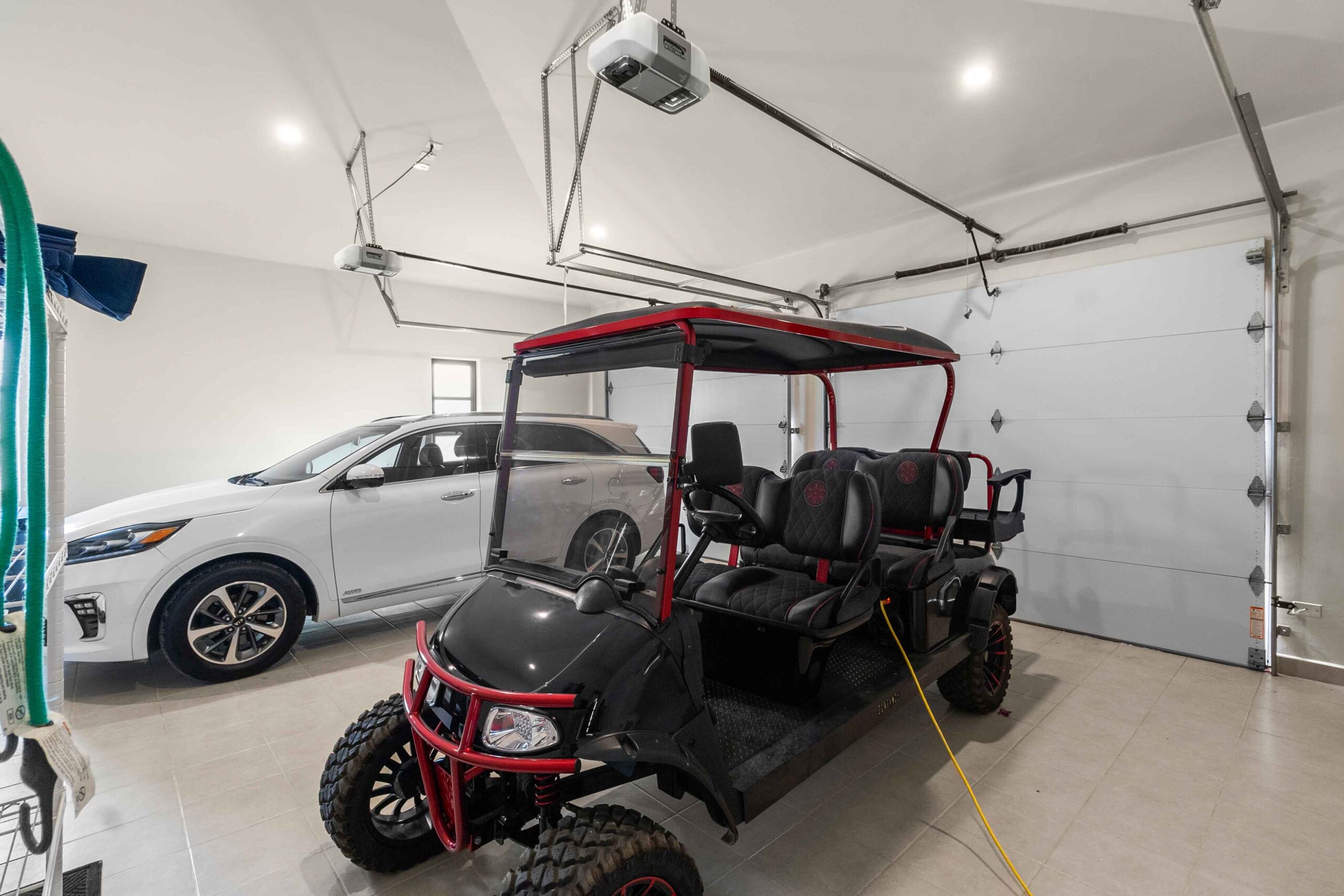 Spacious Grounds: grand driveway for guest parking, accessing a 2-vehicle oversized garage, plus a separate golf cart garage with storage room, side-yard raised vegetable garden with sprinkler system, and Bocce Ball astro-turf court, a game that can be enjoyed by anyone of any age, even golfers!