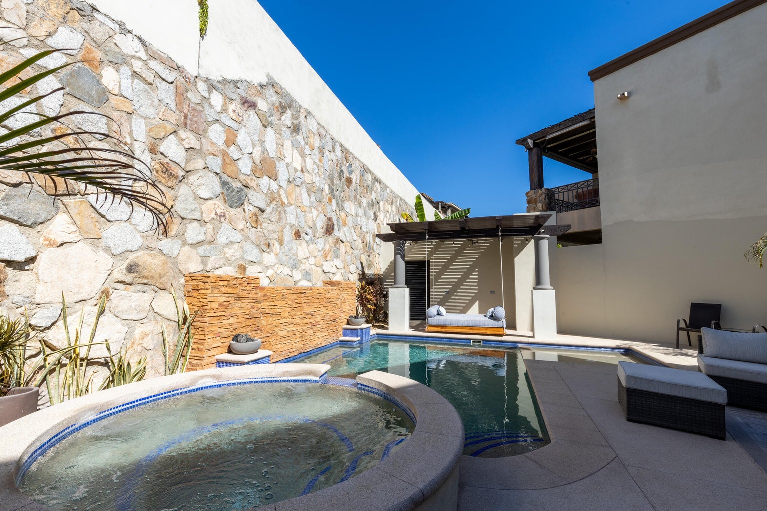 Enjoy the private pool, spa and firepits on three levels. Additionally, there are 2 BBQ areas on the main living space and rooftop. The upgraded 18k-liter cistern and 2-car garage add convenience, while its layout makes it ideal for a dream home or a high-performing vacation rental.